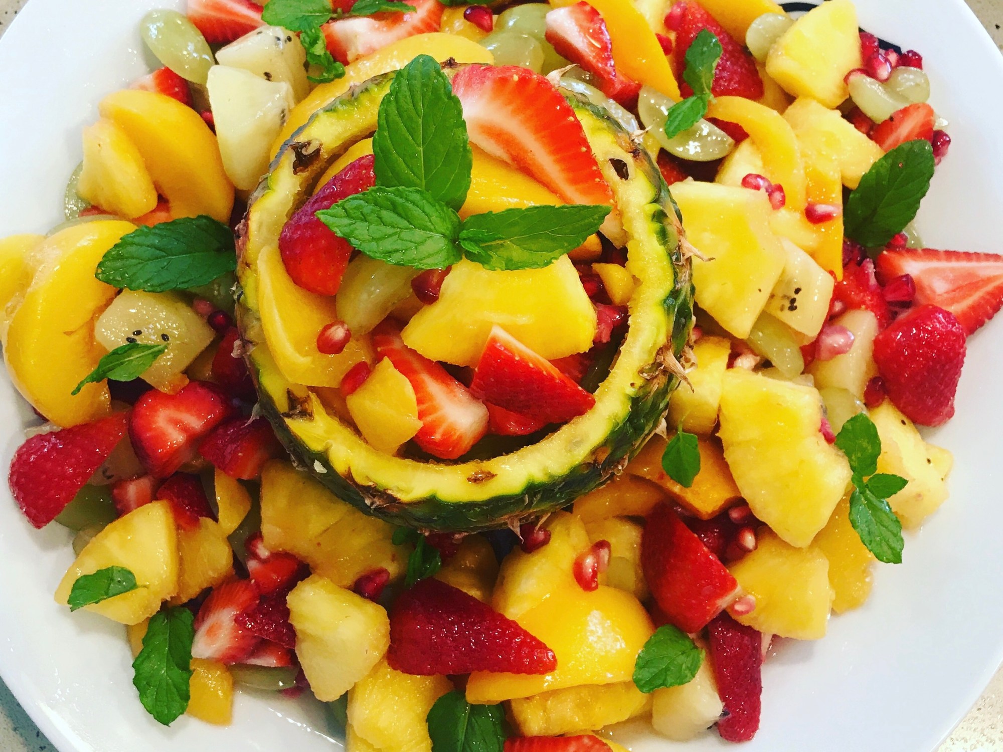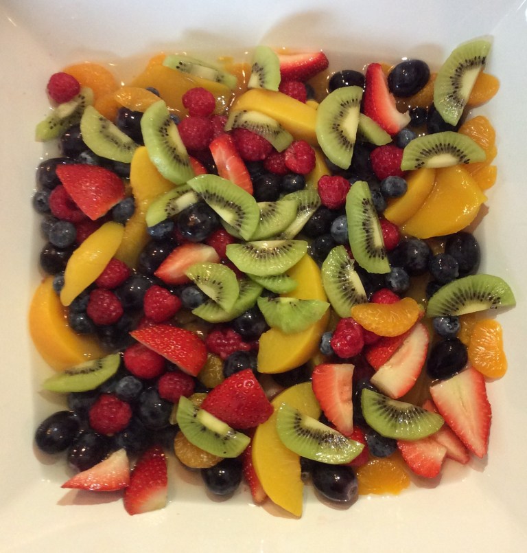 Fresh fruit salad is a great thing, it’s quick to make, looks great, tastes delicious, goes a long way towards your “five a day” and is versatile. This morning we had some for breakfast and the remainder will be used this evening with the pavlova for pudding. For that reason I don’t tend to use fruit which browns, like apple or banana. I do use some tinned fruit as a base, such a mango, peach and mandarin segments, topping it up with whatever fresh fruit you have. The trick is use lots of different colours and textures – and don’t serve it straight from the fridge. It’s more flavoursome if closer to room temperature.