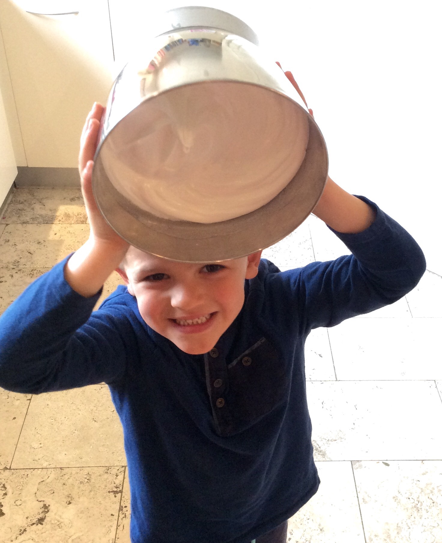 Now add the caster sugar a bit at a time, say four equalish measures. Keep whisking until the meringue does not move in the bowl (dare the kids to stand underneath it!)