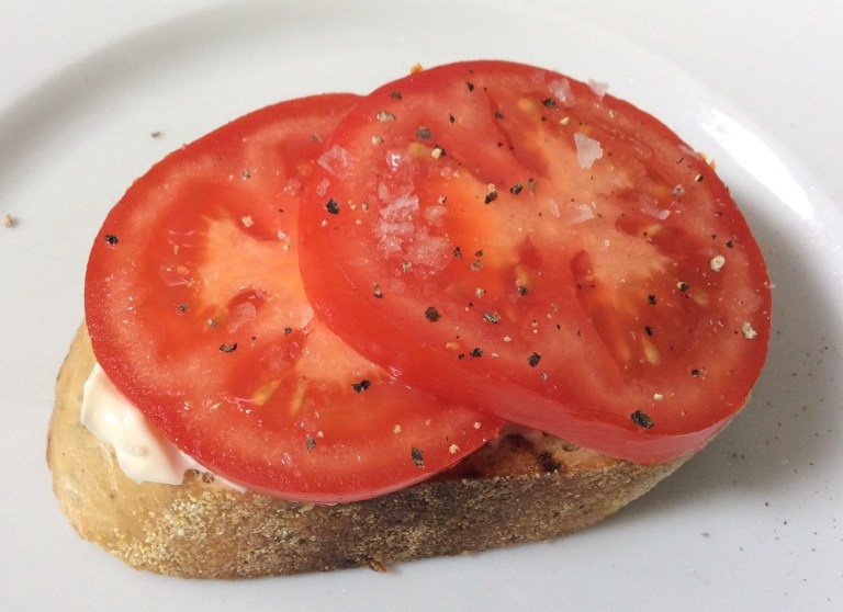 Covered with a couple of slices of ripe vine or beef tomatoes, along with some salt and pepper.