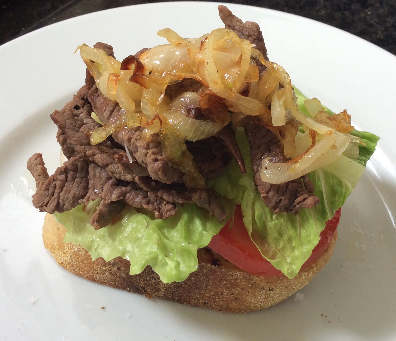 We had steak on the BBQ last night; 3 large sirloin steaks was too much for the 6 of us, so I held some back to use for lunch today. We also had a loaf of garlic and rosemary bread, which was a day past its best – steak sandwich here we come. It’s more assembly than cooking – the pictures will tell you everything you need to know…