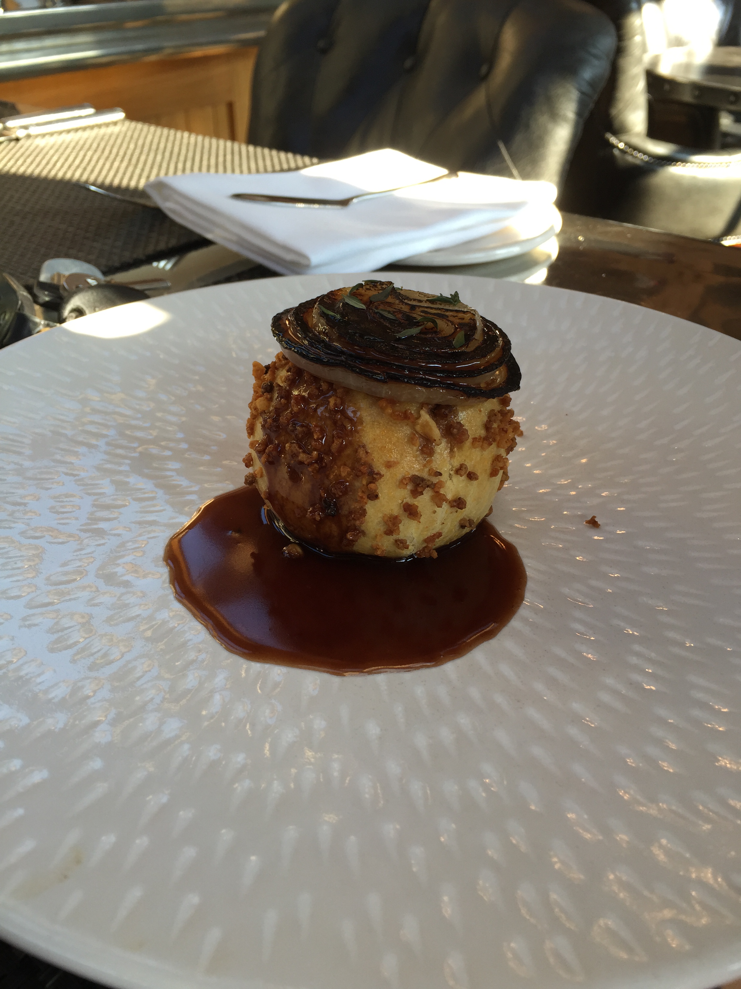 A couple of years ago we visited the Hand & Flowers in Marlow, Buckinghamshire. Uniquely it is a pub with two Michelin stars. Our first experience was good enough for us to make a detour last week…Tom Kerridges famous thrice fried chips lingered in our memory. We were surprised and a little disappointed to see the pub had lost the little garden where we had previously dined. Instead additional indoor seating around an opulent bar had been installed. We were seated in the only remaining unreserved seats, very comfortable leather bar stools, with the sun on our backs and a very comprehensive drinks menu to peruse. As a seasoned gin drinker I was momentarily lost in an entire page dedicated to Gin (many of which were unfamiliar to me). I opted for a gin cocktail – an “Aviator” and whilst it wasn’t the most exciting to look at it nearly knocked my socks off (which I didn’t mind in the least!).