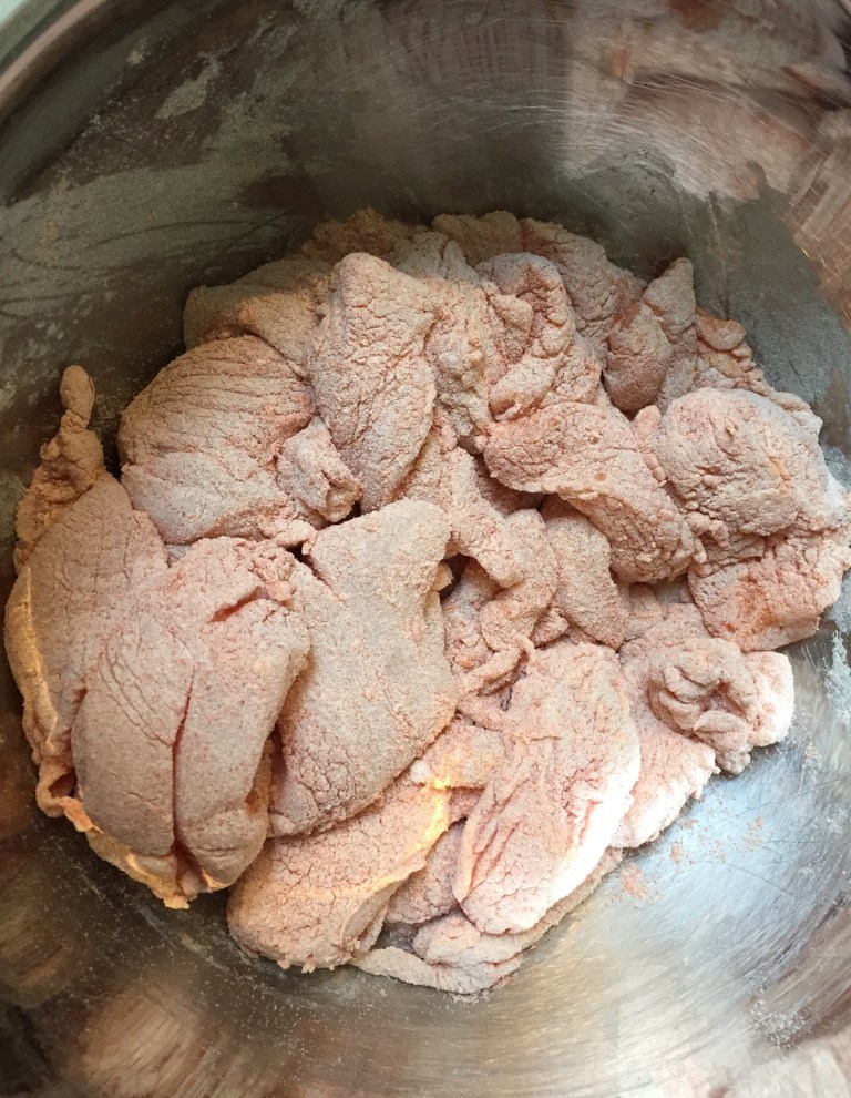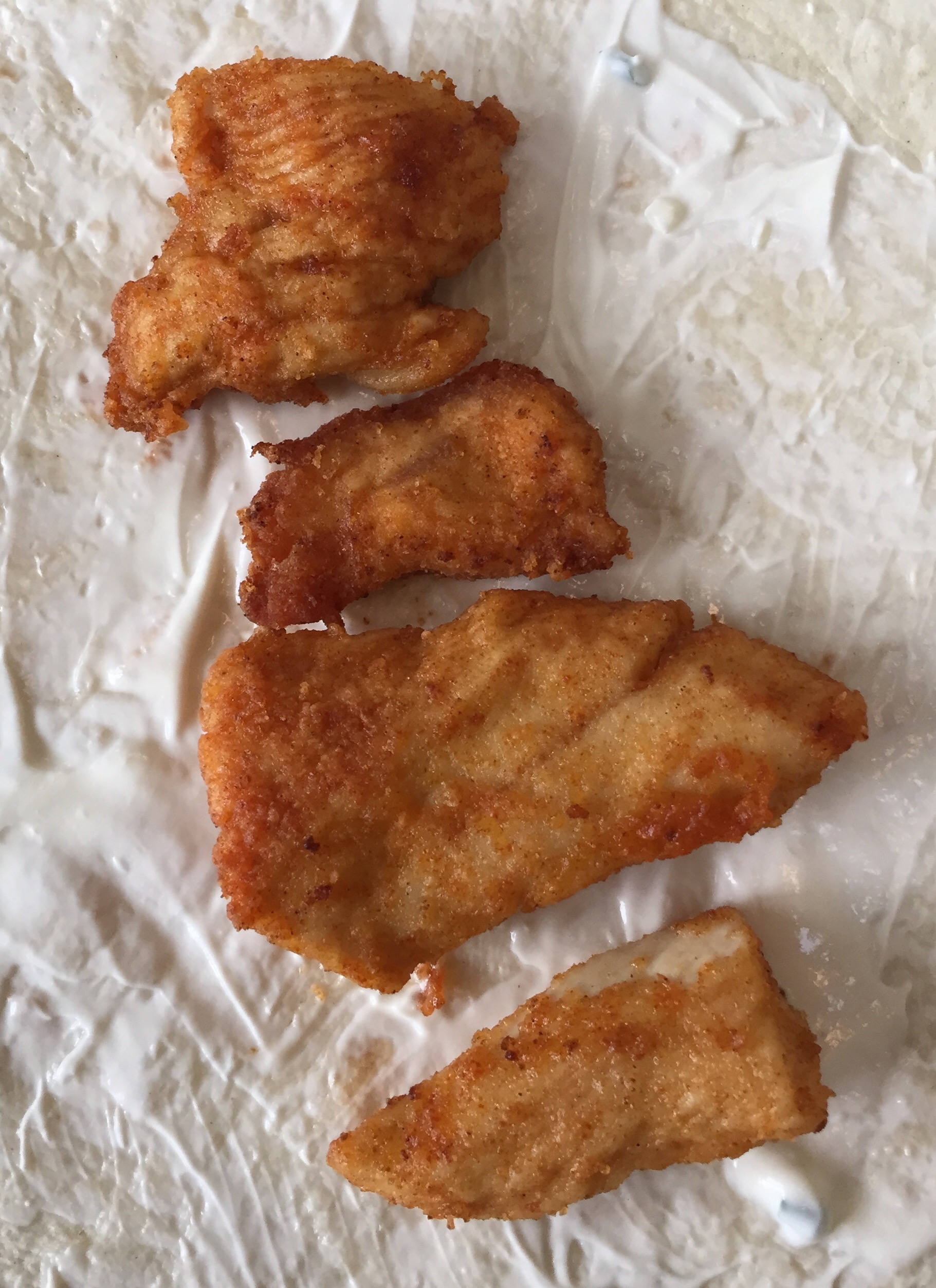 Vegetarian ones are great, but in the event you want to bulk it up chicken is a good choice. Simply slice chicken fillets thinly and coat in some plain flour seasoned with salt, pepper and paprika. Dust off before frying gently in a little sunflower oil.
