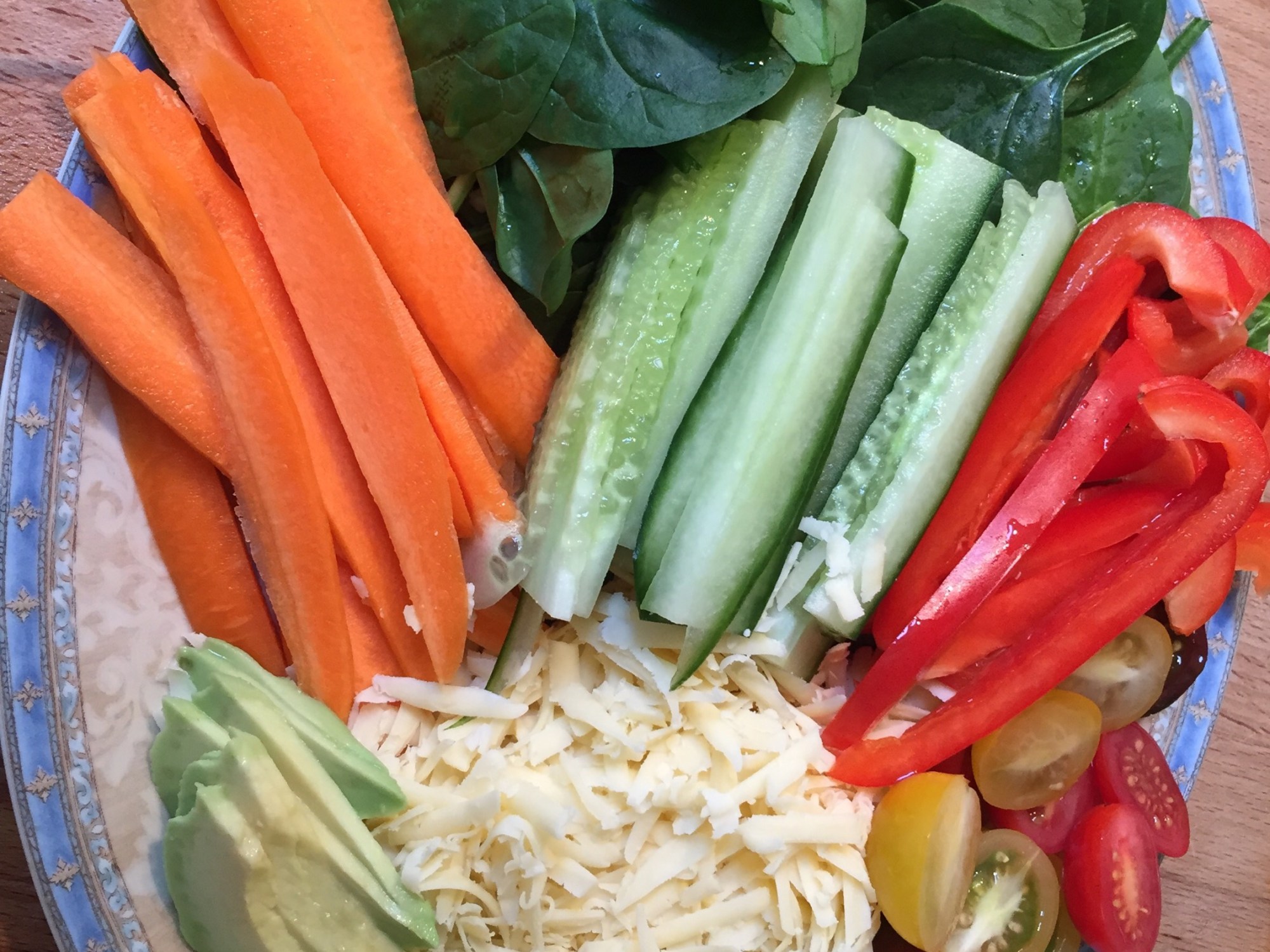 Now top with your favourite salad vegetables. You can add grated cheese and salsa too for extra flavour.