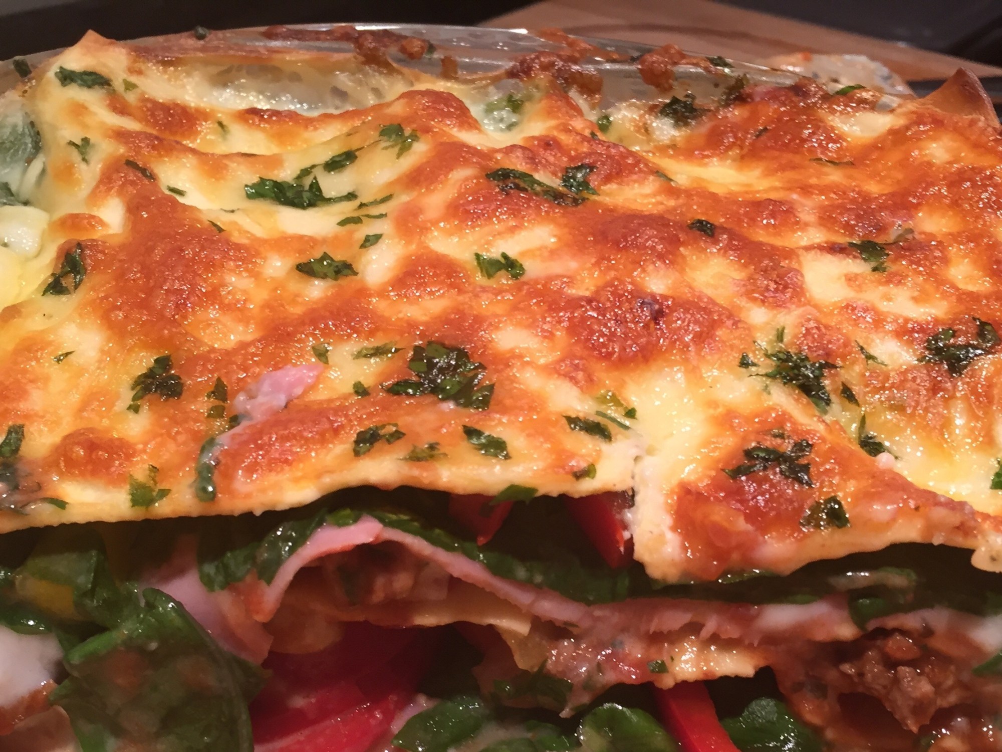 This one has multiple layers – a traditional layer of minced beef in a tomato sauce, along with ham, spinach, and peppers. It looks lovely and vibrant on the plate, but it takes a while to make. Its a great recipe if you are feeding a large group and all the better for being made the day before.