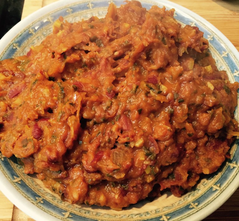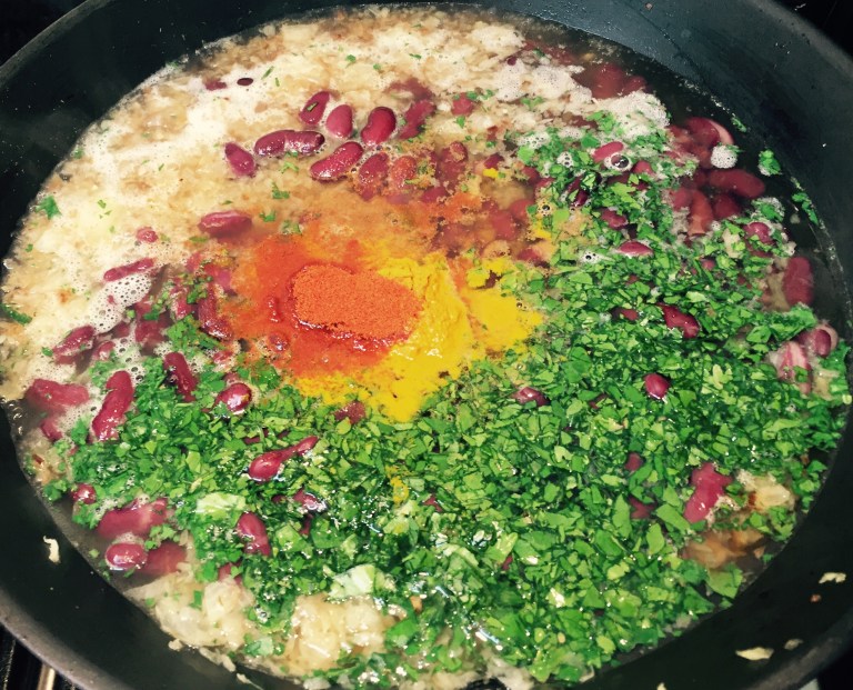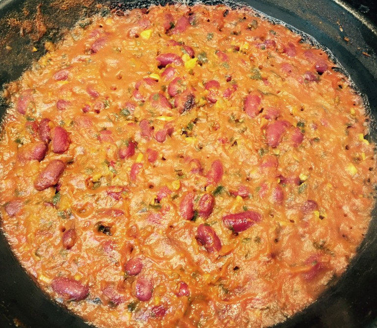 This recipe was inspired by a recent trip where I was able to watch men from Afghanistan prepare a variety of dishes for Iftar, the breaking of the fast during the month long Ramadan. Vegetarian dishes are a big part of middle eastern cuisine and with a recent vege convert in our house I wanted to try and replicate one of the bean dishes I tasted. I’m calling this Afghan beans and it could be served as a vegetarian side dish with a curry, or as we did – used as the main ingredient for stuffing taco shells (a clash of cultures perhaps but it worked really well – we shall call it fusion food!)…