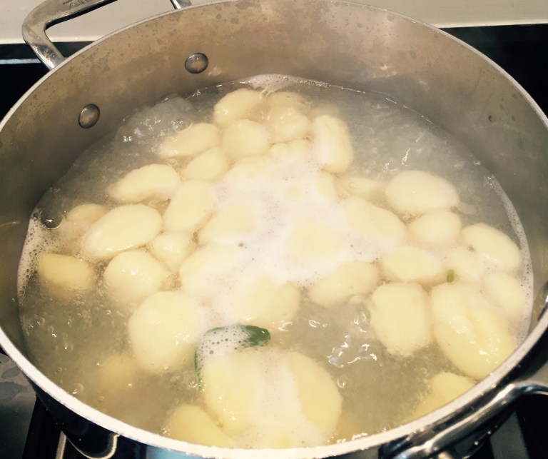 Now add the gnocchi to the boiling water and as soon as they pop to the surface, drain well or the excess water will dilute your sauce.