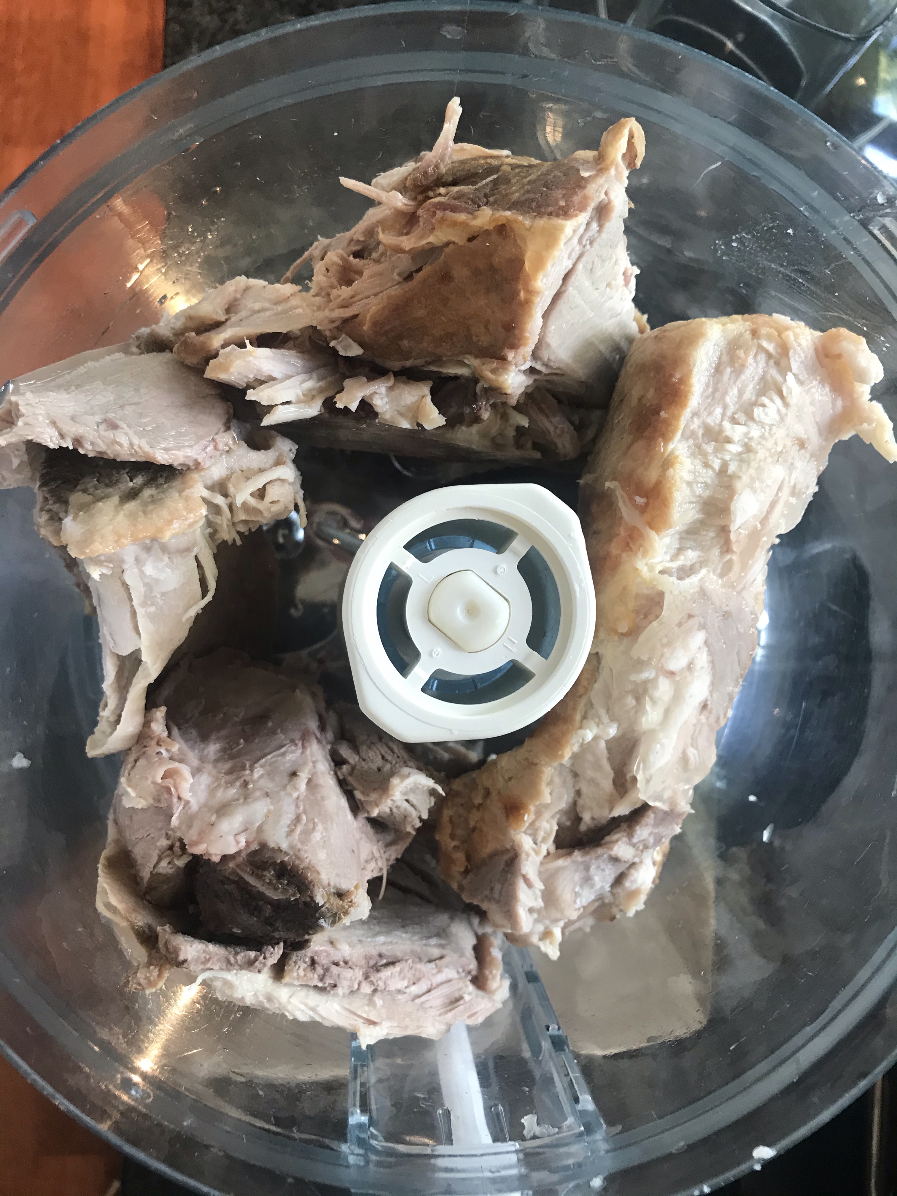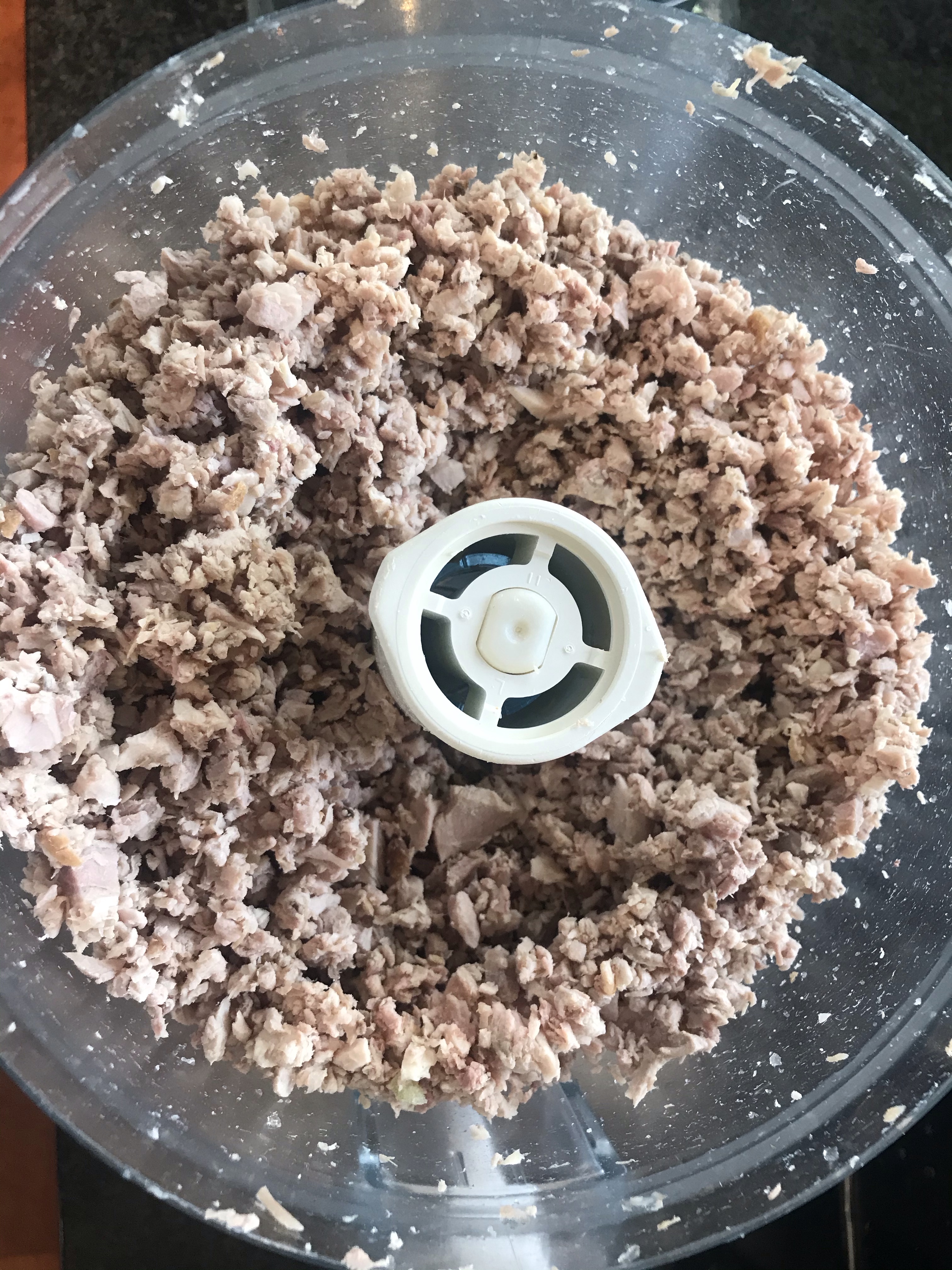 - Chop the meat coarsely or use a food processor, on pulse – don’t let it get too fine. Transfer to a large bowl.